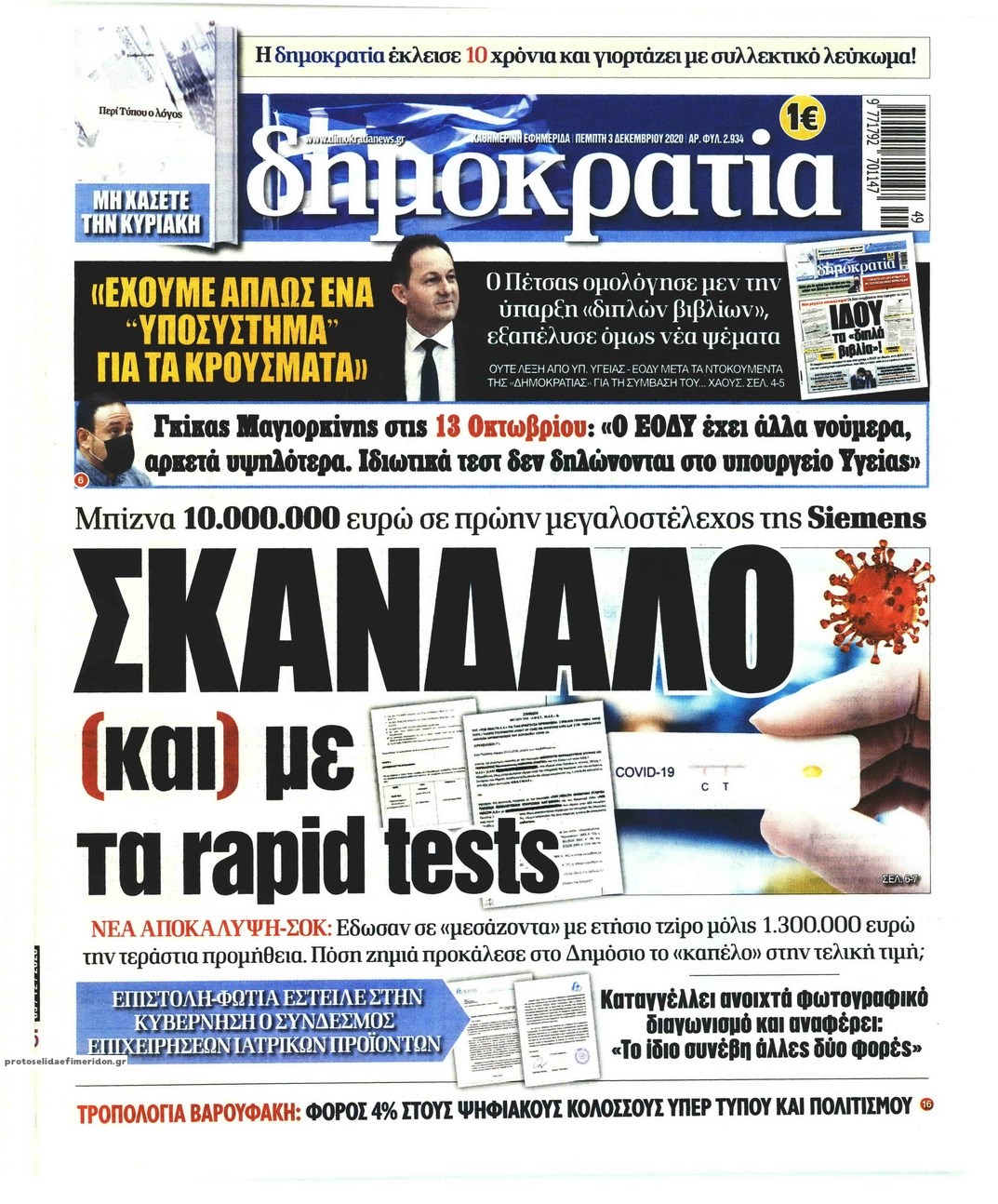 Δήλωσε ότι τα τεστ των κινητών μονάδων του ΕΟΔΥ γίνονται με χρήματα του υπουργείου Ανάπτυξης και του ΕΣΠΑ». Ερωτηθείς για δημοσίευμα της εφημερίδας «Δημοκρατία» που κάνει λόγο για «μπίζνα» των τεστ, ύψους 10 εκατομμυρίων ευρώ μετά από πρωτοβουλία μεγαλοστελέχους της Siemens, ισχυρίστηκε ότι αγνοεί αυτή την πληροφορία