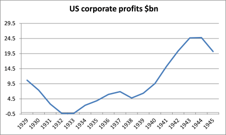 Στα χρόνια από το 1929 και μέχρι το 1945, το ποσοστό κέρδους στην αμερικανική οικονομία, κινήθηκε, όπως φαίνεται παρακάτω.