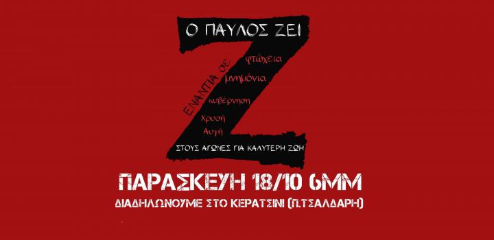 18  Σεπτέμβρη 2013, Κερατσίνι: Ο Παύλος Φύσσας δολοφονείται από τον Γιώργο Ρουπακιά, μέλος των ταγμάτων εφόδου της Χ.Α, με δυο μαχαιριές στην καρδιά εκτελώντας εντολές ανωτέρων!