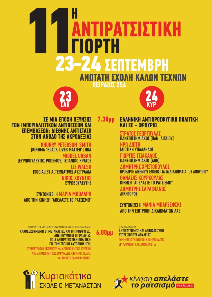Θεωρώ πως είναι πραγματικά σημαντικό να υπάρχουν τέτοιες αντιρατσιστικές γιορτές όπως η σημερινή, ώστε να εμβαθύνουμε και να προβάλλουμε τη στήριξη και την κατανόηση στον καθέναν και την καθεμία, όχι μόνο για να γιορτάζουμε και να γνωρίζουμε ο ένας την κουλτούρα του άλλου, αλλά και για να συζητάμε πολιτικά. Να συζητάμε πολιτικές για την οικοδόμηση της αντίστασης στα κυβερνητικά σχέδια.