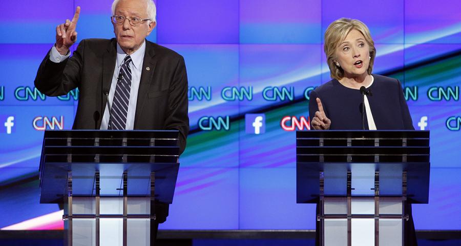 Στο ντιμπέιτ της Κυριακής, ο Μπέρνι Σάντερς συγκρούστηκε με την συνυποψήφιά του για θέματα εφ'όλης της ύλης. Τα σημεία σύγκρουσης αφορούσαν στη στάση της κ. Κλίντον στην Διατλαντική Συμφωνία αλλά και τη συμφωνία με τις 12 χώρες που έχει ήδη υπογραφεί (ΤΡΡ), την πολιτική εμπορίου και επενδύσεων, τα όπλα και την αυτοκινητοβιομηχανία.