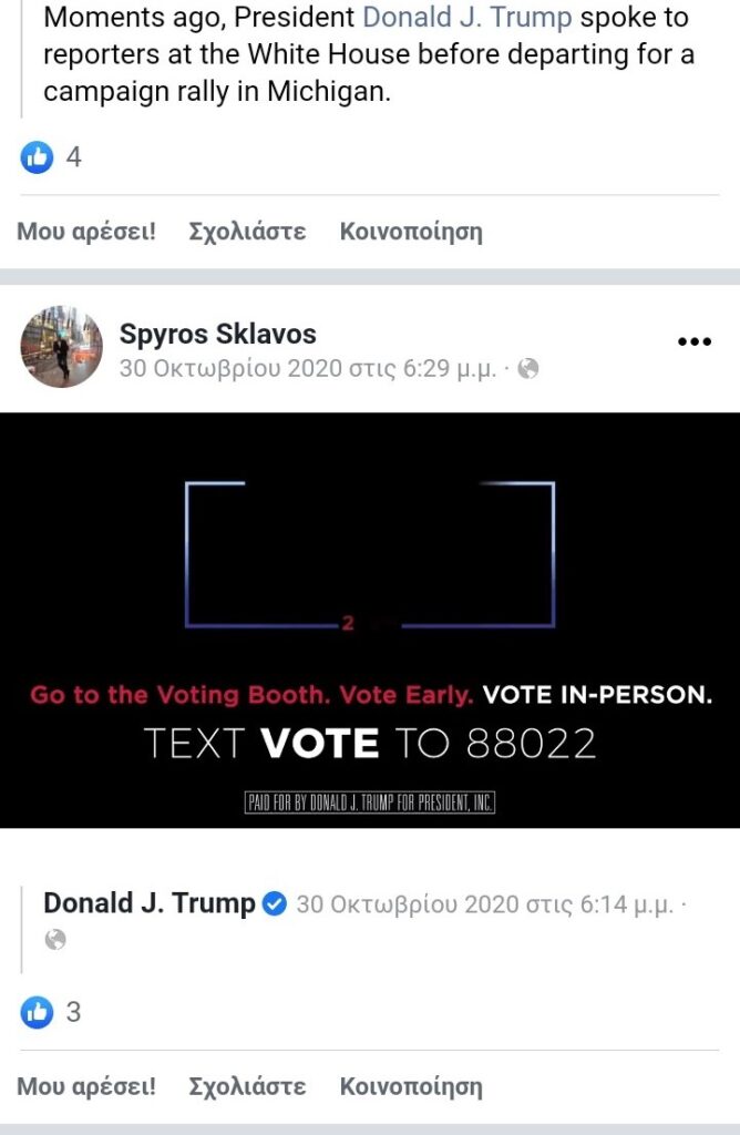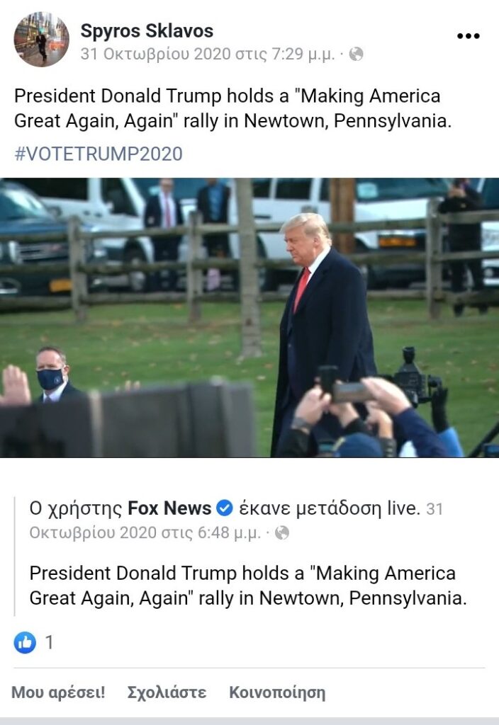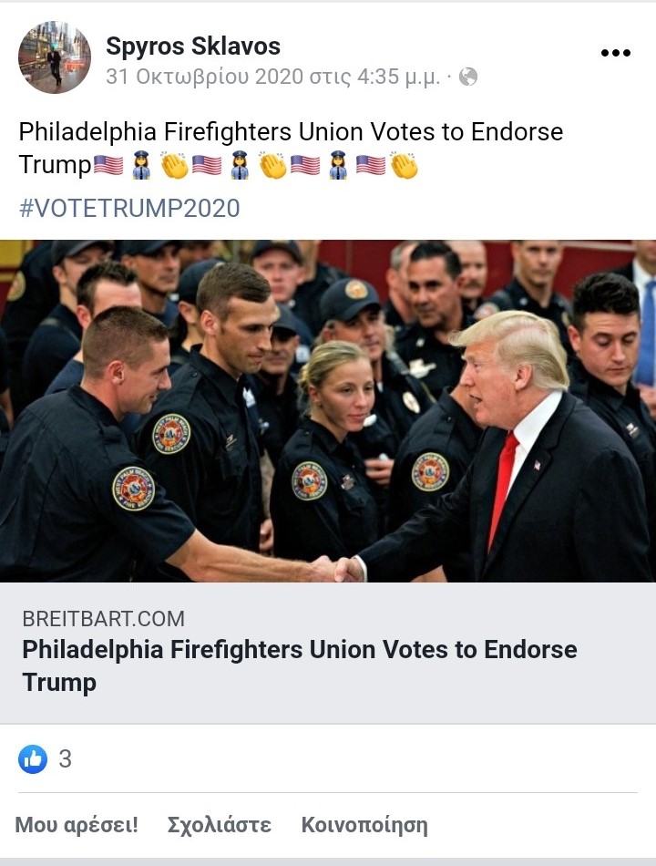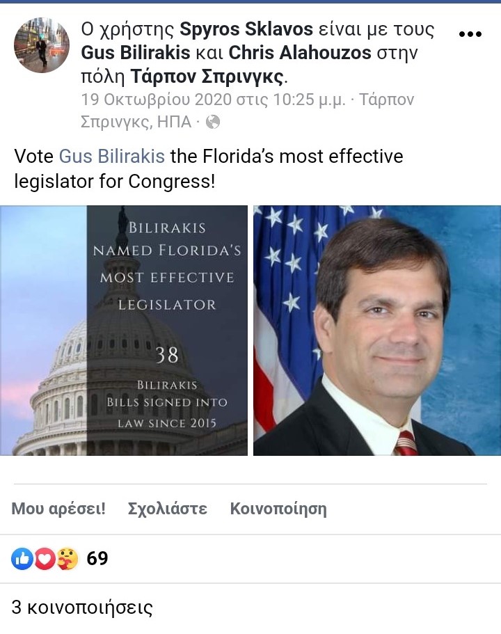 Όπως δείχνει το προφίλ του υποστράτηγου Σκλάβου στο Facebook, ο ίδιος είναι απόφοιτος του New York College και της Ακαδημίας του FBI, πράγμα που μάλλον εξηγεί το ενδιαφέρον του για τα αμερικάνικα πράγματα. Ωστόσο, το ενδιαφέρον αυτό φαίνεται να προσανατολίζεται σχεδόν αποκλειστικά στην προπαγάνδα υπέρ του τέως προέδρου των ΗΠΑ, ενώ σε μία ανάρτηση υποστηρίζει και τον Ελληνοαμερικανό Ρεπουμπλικάνο Gus Bilirakis, προσωπικό φίλο του Τζιτζικού κατά δήλωσή του, ο οποίος έχει την τιμητική του σε διάφορες ιστοσελίδες των Δημοκρατικών για τις ακραίες θέσεις του (ενδεικτικά).