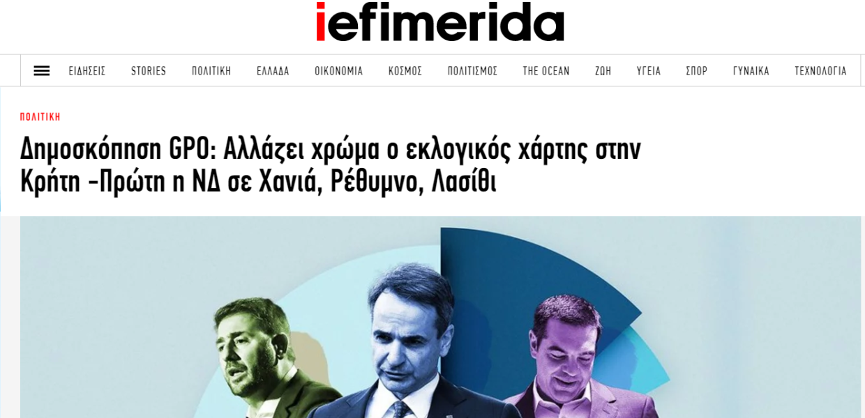 Τρεις μέρες μετά την αποκάλυψη ότι η δημοσκόπηση της GPO που παρουσίασαν τα Νέα στο πρωτοσέλιδό τους την Παρασκευή, έχει γίνει – και δημοσιευθεί – πριν από δύο μήνες, και παρά την σχετική καταγγελία του ΣΥΡΙΖΑ-Προοδευτική Συμμαχία, σήμερα την παρουσίαζε από το πρωί κανονικά ως καινούργια.