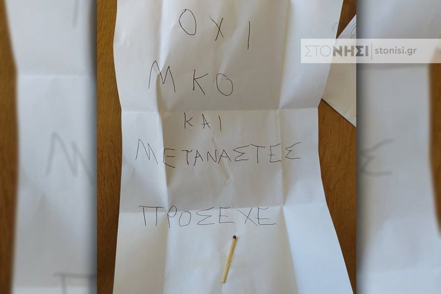 Πριν από μερικές μέρες, ο ανήλικος γιος του βρήκε στο γραμματοκιβώτιο του οικογενειακού ξενοδοχείου, στην Πέτρα έναν φάκελο, που είχε μέσα ένα χαρτί με πέντε μόνο λέξεις: «ΌΧΙ ΜΚΟ ΚΑΙ ΜΕΤΑΝΑΣΤΕΣ. ΠΡΟΣΕΧΕ». Κι από κάτω, κολλημένο ένα σπίρτο. Το μήνυμα σαφές: θα σας κάψουμε, αν βάλετε μετανάστες, λέει στο «Ν» ο Στέφανος Μιχιώτης, σύζυγος ξενοδόχου στην Πέτρα, ο οποίος θέλησε να μοιραστεί τις σκέψεις του μαζί μας, για όλ’ αυτά που προκαλούν φόβο και τρομοκρατία στην περιοχή.