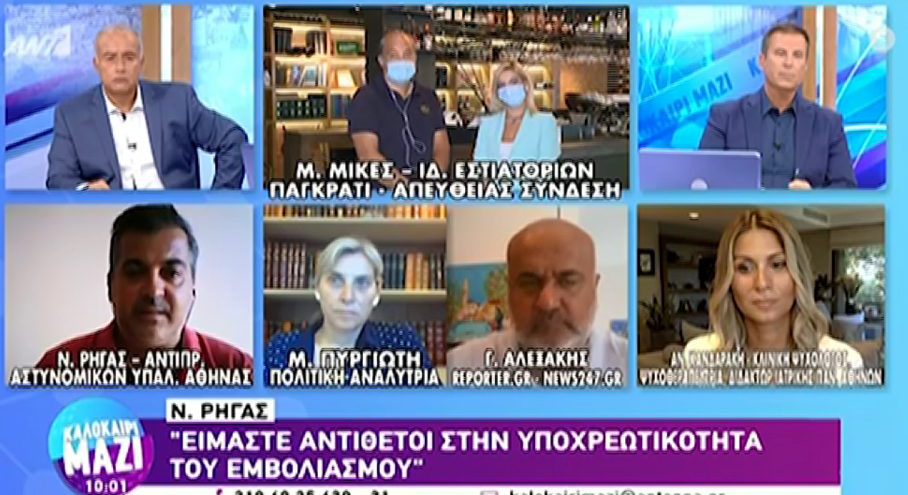 Με επιχείρημα ότι θα προκληθούν προβλήματα στην ασφάλεια τάχθηκε κατά της επέκτασης του υποχρεωτικού εμβολιασμού στα σώματα ασφαλείας, μιλώντας στην πρωινή ενημερωτική εκπομπή του Ant1, ο αντιπρόεδρος της Ένωσης Αστυνομικών Υπαλλήλων Αθηνών, Νίκος Ρήγας. «Μπορούμε κι εμείς να επικαλεστούμε δεκάδες άλλες εργασιακές ομάδες, όχι στον κοινωνικό αυτοματισμό» τόνισε μεταξύ άλλων.