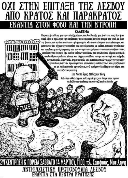 – να δηλώσουμε έμπρακτα την αντίθεσή μας στον εκφασισμό της κοινωνίας του νησιού -και σε κάθε μορφή φασισμού & εθνικισμού- και να στείλουμε φασίστες και νεοναζί πίσω στις τρύπες τους.