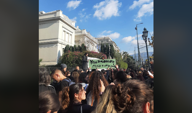 «Μας θέλει μαθητές το ίδιο σύστημα που θρέφει βιαστές», «Ο πόλεμος στην τέχνη είναι μια ντροπή, όλοι οι καλλιτέχνες είμαστε μαζί» μερικά από τα συνθήματα.