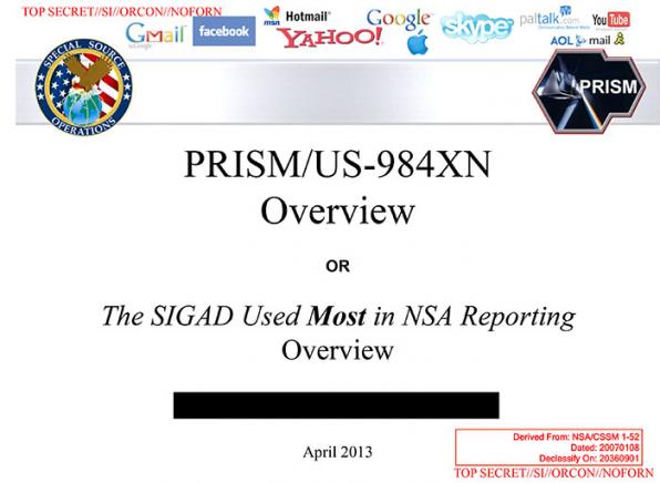 Αυτή είναι η πρώτη διαφάνεια που βγήκε στη δημοσιότητα από τη διαρροή. Δείχνει την πρώτη σελίδα της παρουσίασης power point που διέρρευσε ο Έντουαρντ Σνόουντεν.