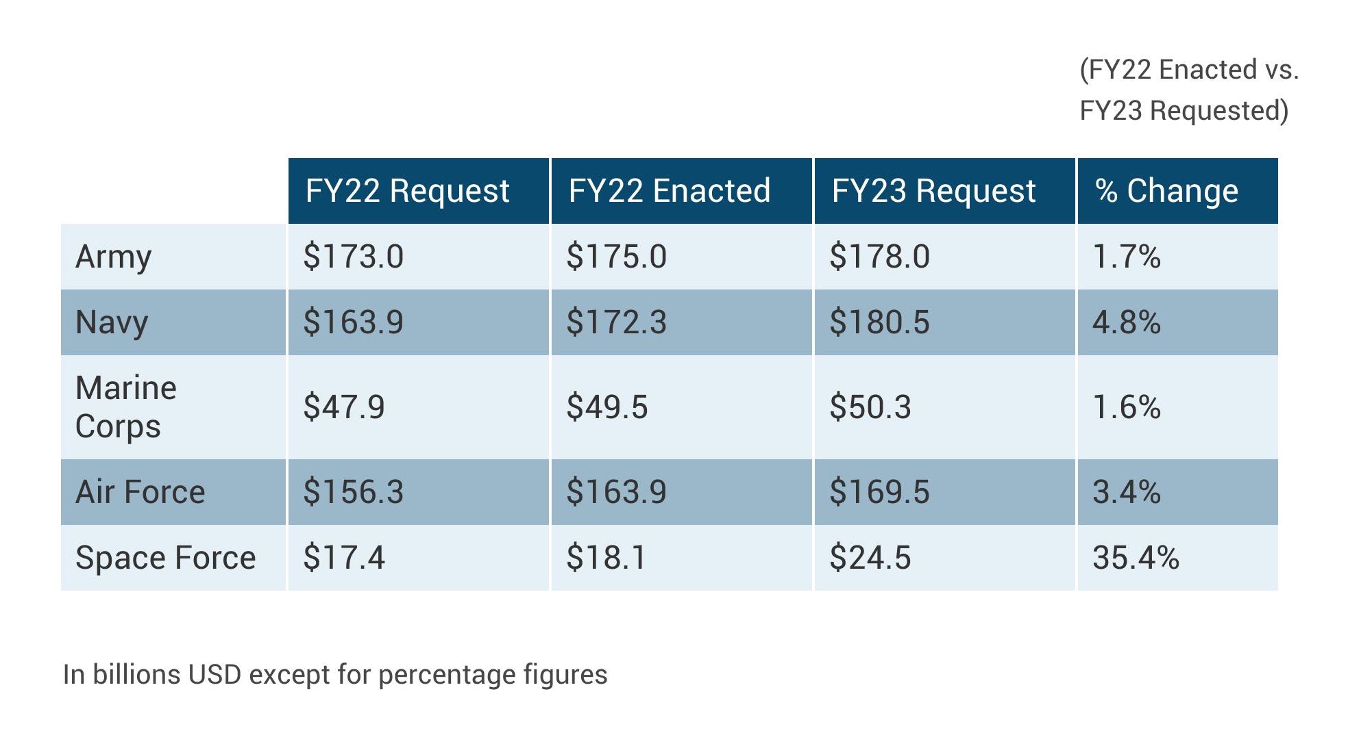Ο Μπάιντεν χαρακτήρισε το προτεινόμενο σχέδιο προϋπολογισμού ως «μία από τις μεγαλύτερες επενδύσεις στην εθνική μας ασφάλεια στην ιστορία, με τα κεφάλαια που απαιτούνται για να διασφαλιστεί ότι ο στρατός μας παραμένει ο καλύτερα προετοιμασμένος, καλύτερα εκπαιδευμένος, καλύτερα εξοπλισμένος στρατός στον κόσμο». Το συνολικό σχέδιο δαπανών μεταφράζεται σε αύξηση άνω των 30 δισεκατομμυρίων δολαρίων, 4% περισσότερο σε σχέση με το οικονομικό έτος 2022, αλλά μάλλον όχι αρκετό για να ικανοποιήσει τους Ρεπουμπλικάνους στο Κογκρέσο, οι οποίοι απαιτούν οι αυξήσεις να κλιμακωθούν ευθυγραμμιζόμενες με τον τρέχοντα ρυθμό πληθωρισμού.