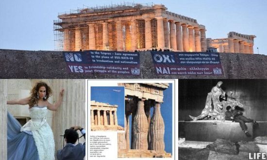 - όταν το ελληνικό κράτος έδινε την άδεια στην κυρία Τζένιφερ Λόπεζ, το 2008, να χρησιμοποιεί τον Παρθενώνα ως ντεκόρ για τη διαφήμιση της κολεξιόν της…