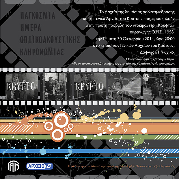 Θα επακολουθούσε συζήτηση. Σκόπευα να πάω στην εκδήλωση, κυρίως για να καταγγείλω την παραχάραξη της ιστορίας των οπτικοακουστικών αρχείων της χώρας, που συμβαίνει μετά το μαύρο της ΕΡΤ και που εκφράζεται σε όλο της το μεγαλείο από αυτό το λογότυπο “Αρχείο ΔΤ” που βλέπετε στην πρόσκληση που μου απευθύνθηκε. Το ίδιο λογότυπο εμφανίζεται και στα (ο Θεός να τα κάνει) τηλεοπτικά προγράμματα της ΝΕΡΙΤ, κάθε φορά που χρησιμοποιείται υλικό από το ιστορικό αρχείο της ΕΡΤ.