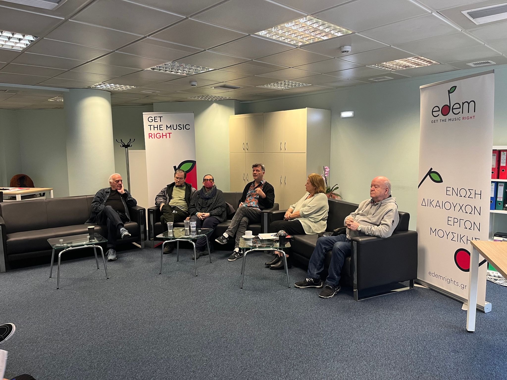 Σε μια συνάντηση γνωριμίας, απολογισμού των πεπραγμένων της ΕΔΕΜ στα περίπου δύο χρόνια της λειτουργίας της αλλά και ενημέρωσης αναφορικά με τις στοχεύσεις της, οι ομιλητές αναφέρθηκαν στη σημασία του εγχειρήματος, που προσβλέπει στη στήριξη, όχι μόνο των Ελλήνων δημιουργών, αλλά και της ίδιας της ελληνικής μουσικής δημιουργίας ως πυλώνα αλλά και προϋπόθεσης ύπαρξης του σύγχρονου ελληνικού πολιτισμού.