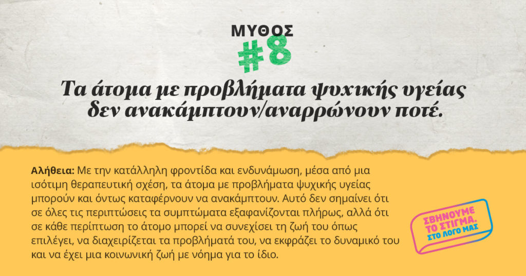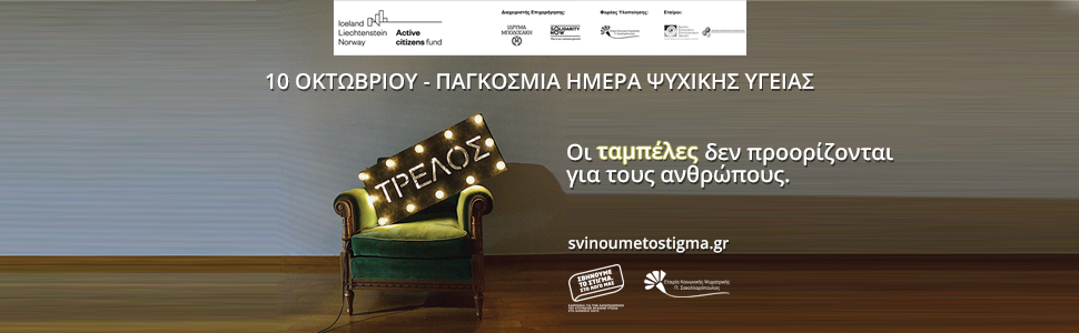 *Η καμπάνια δημιουργήθηκε στο πλαίσιο της Προγράμματος για την Καταπολέμηση του Στίγματος Ψυχικής Υγείας Σβήνουμε το Στίγμα. Στο Λόγο μας. το οποίο υλοποιεί η Εταιρία Κοινωνικής Ψυχιατρικής Π. Σακελλαρόπουλος με εταίρους το Ίδρυμα Θεμιστοκλή και Δημήτρη Τσάτσου – Κέντρο Ευρωπαϊκού Συνταγματικού Δικαίου (ΚΕΣΔ) και την Εταιρία Μέριμνας & Αποκατάστασης Ατόμων με Ψυχοκοινωνικά Προβλήματα. Το έργο χρηματοδοτείται από το Πρόγραμμα Active citizens fund, με διαχειριστές της επιχορήγησης για την Ελλάδα το Ίδρυμα Μποδοσάκη και το SolidarityNow.