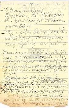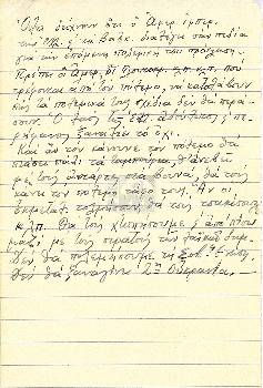 Η οικογ. όλη εξοντώνεται. Και τώρα η ίδια τύχη περιμένει και μένα. Η περίπ. μου δεν είναι μοναδική. Είναι πολλές, πάρα πολλές. Αυτός ο μονόπλευρος εμφύλιος πόλεμος κατά των οπαδών της αριστ. θα φέρει νέες μεγάλες συμφ. στην Ελλ. Ενώ αν υπήρχε καλή θέληση από την πλευρά της δεξιάς το πρόβλημα της σωτηρίας της άτυχης χώρας μας και του λαού της θα ήταν αρκετά απλό γιατί κρίνεται στις λέξεις: Γενική αμνηστία, Δημοκρατία, Ειρήνη και μέτρα για τη βελτίωση του βιωτικού επιπέδου του λαού. Αλλά ποια κυβέρνηση θα εφαρμόσει ένα τέτοιο πρόγραμμα; Ιδού το ερώτημα όπως λέει και ο μεγάλος Αγγλος ποιητής. That is the question».