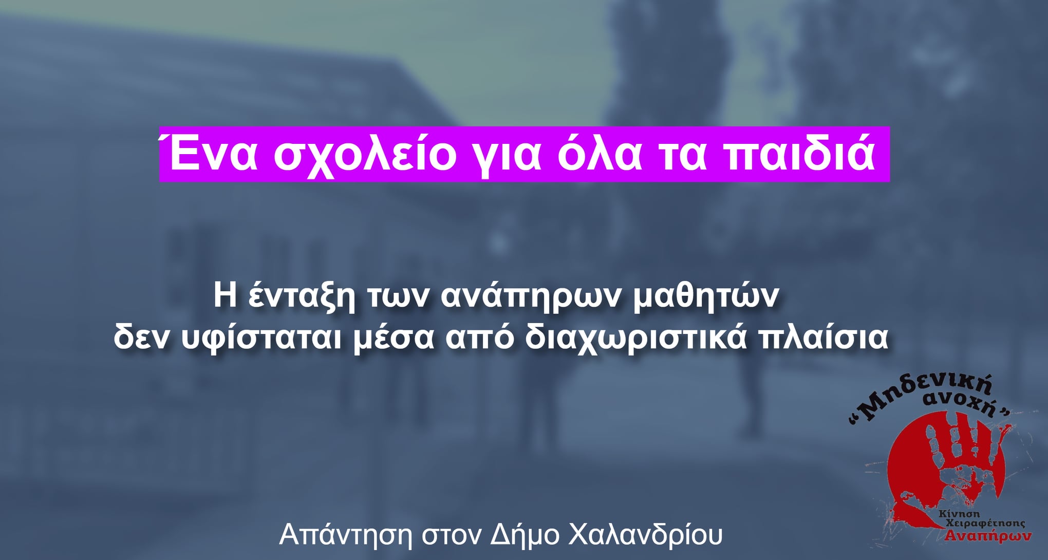 Καλούμε τον Δήμο Χαλανδρίου να συνεχίσει να αναπτύσσει τις ενταξιακές του δράσεις και να μη γίνει συμμέτοχος διαχωριστικών πολιτικών και πρακτικών.