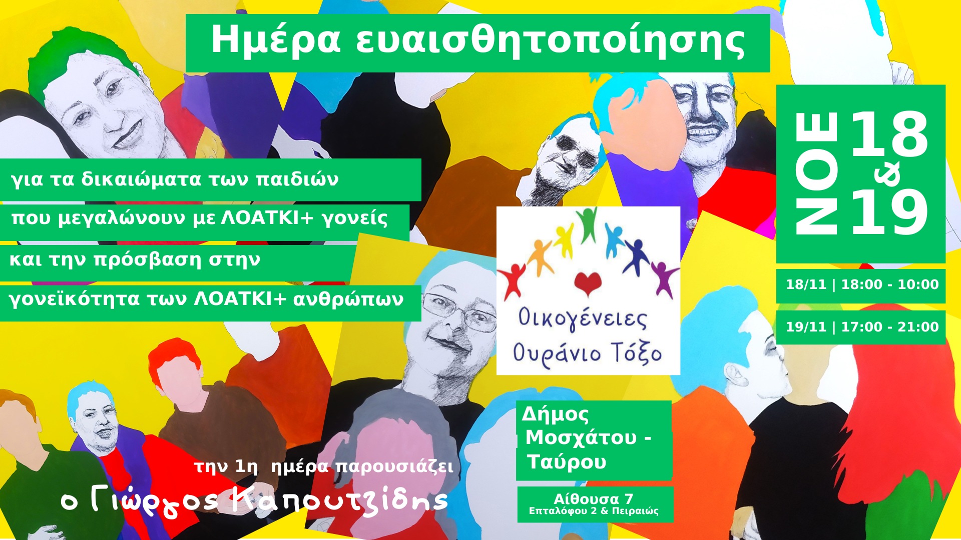 Θα πραγματοποιηθούν το Σάββατο 18/11 και ώρες 18.00 – 22.00 και την Κυριακή 19/11 και 17.00-21.00 στην Αίθουσα 7 του Δήμου Μοσχάτου-Ταύρου (οδός Επταλόφου 2 και Πειραιώς – πρώην Σφαγεία, δίπλα στο Δημαρχείο Ταύρου).