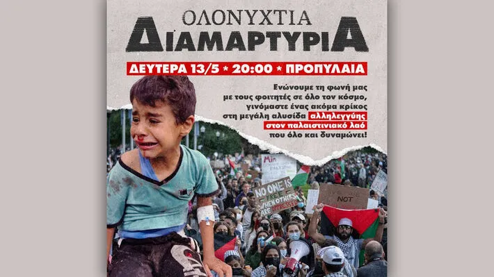 Ενώνουμε τη φωνή μας με τους φοιτητές σε όλο τον κόσμο, γινόμαστε ένας ακόμα κρίκος στη μεγάλη αλυσίδα αλληλεγγύης στον παλαιστινιακό λαό που όλο και δυναμώνει!