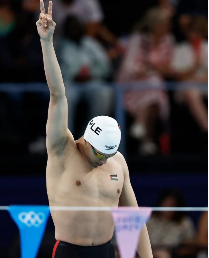 Ο 24χρονος έδειξε την παλαιστινιακή σημαία στο στήθος του καθώς εξηγούσε τι σημαίνει να εκπροσωπεί μια πατρίδα που δεν στερείται απλώς πισίνας, αλλά αγωνίζεται για βασικά αγαθά όπως φαγητό και νερό. «Η Γαλλία δεν αναγνωρίζει την Παλαιστίνη. Κι όμως είμαι εδώ με μια σημαία στο στήθος μου», δήλωσε, όπως μεταδίδει το Reuters, αφού τερμάτισε τρίτος σε μια σειρά 100 μέτρων ύπτιο που αποδείχθηκε η πρώτη και τελευταία του κολύμβηση στους Αγώνες του Παρισιού.