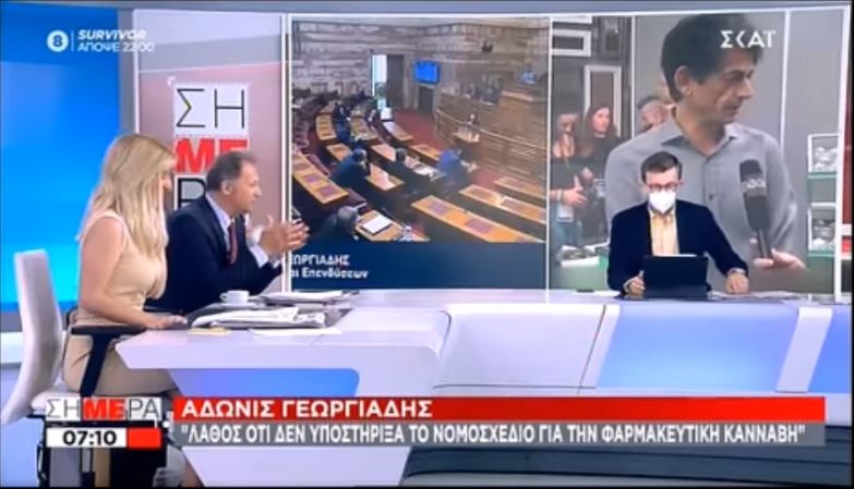 Ο δημοσιογράφος του ΣΚΑΪ δήλωσε ότι η Νέα Δημοκρατία για λόγους ψηφοθηρικούς ήταν ενάντια στη φαρμακευτική κάνναβη ως αντιπολίτευση και μετά την ομολογία του Άδωνι Γεωργιάδη από το βήμα της Βουλής ότι άλλα έλεγε η ΝΔ το 2018 κι άλλα λέει σήμερα και την εκθείαση του Νίκου Καρανίκα για τη συμβολή του, και ο Άρης Πορτοσάλτε σχολίασε το θέμα ως εξής: «Δεν το μελέτησαν σωστά ως αντιπολίτευση το θέμα της φαρμακευτικής κάνναβης. Ήταν σε κόντρα με τη φαρμακευτική κάνναβη για λόγους ψηφοθηρικούς, γιατί η πελατεία η δεξιά ακούει φαρμακευτική κάνναβη και της σηκώνεται η τρίχα». Ο παρουσιαστής της εκπομπής Δημήτρης Οικονόμου μάλιστα, συμπλήρωσε: «νομίζουν ότι θα κάνουν μπάφο όλοι οι Έλληνες».