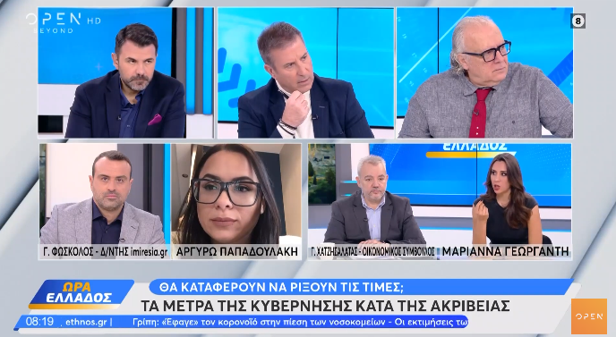 Σχολιάζοντας τα νέα μέτρα της κυβέρνησης, τόνισε ότι «φυσιολογικά έπρεπε να αφορούν την ενέργεια, τα καύσιμα, τα ενοίκια και τα τρόφιμα, δηλαδή παρέμβαση στις τιμές… Τα μέτρα της κυβέρνησης είναι στο “βλέπουμε”. Το ίδιο συζητούσαμε για τις επιδοτήσεις στην ενέργεια ή στα καύσιμα. Έφεραν μειώσεις στις τιμές; Έχουμε τις πιο ακριβές βενζίνες στην ΕΕ, από τις πιο ακριβές ενέργειες… Αν συζητούσαμε κάτι σήμερα, θα ήταν ότι αυτή η τιμή βενζίνης, από τα 2 ευρώ να πάει στο 1,3 ευρώ».