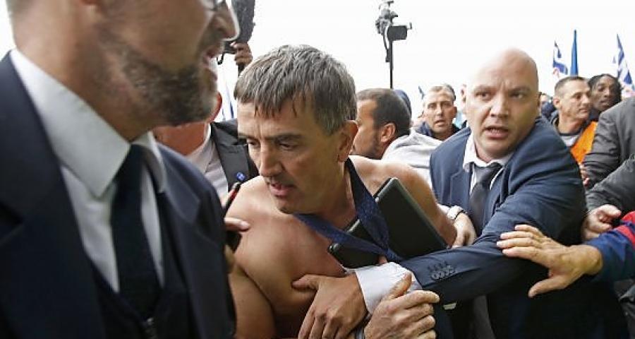 Συγκεκριμένα 100 εργαζόμενοι εισέβαλαν στο κτήριο από την κεντρική πύλη. Λίγο αργότερα, δύο υψηλόβαθμα στελέχη της εταιρείας διέφυγαν από αυτό με σκισμένα ρούχα.