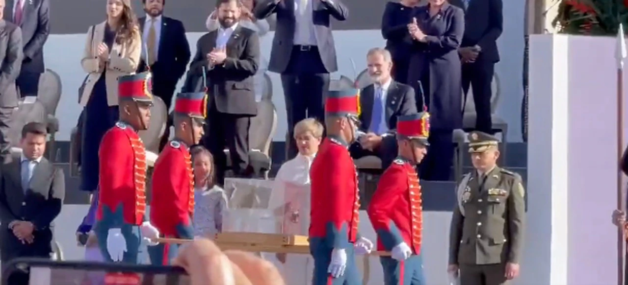 Όταν το ξίφος έφτασε στην κεντρική πλατεία, άνθρωποι και εκπρόσωποι από χώρες όπως η Χιλή, η Σερβία και οι Ηνωμένες Πολιτείες σηκώθηκαν όρθιοι ως ένδειξη σεβασμού -κάποιοι μάλιστα χειροκρότησαν όρθιοι- αλλά ο βασιλιάς Φελίπε ΣΤ’ παρέμεινε καθισμένος, αναφέρει το λατινοαμερικανικό πρακτορείο Telesur.
