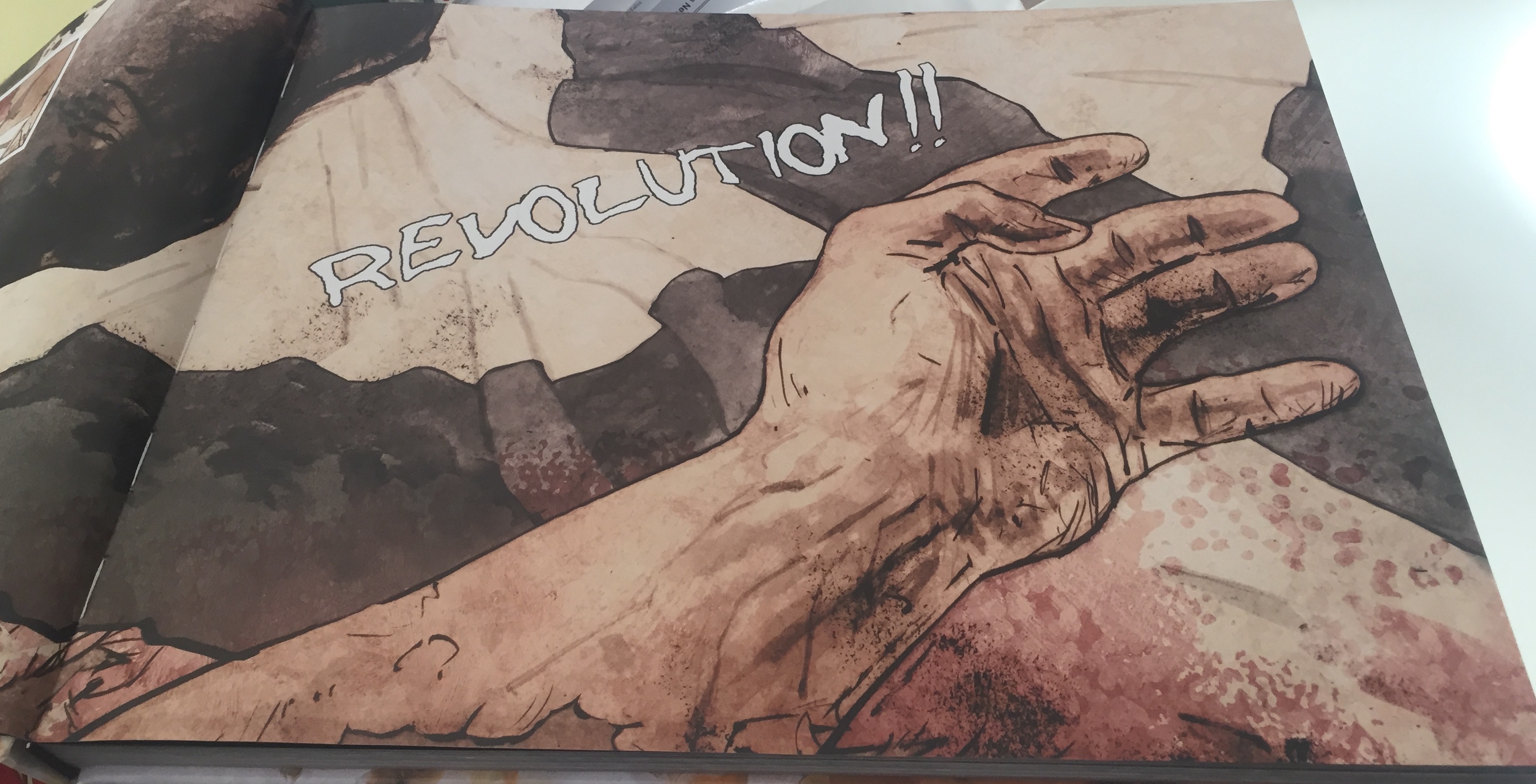 “Δεν υπήρχε ποτέ η πρόθεση να αποτελέσει φόρο τιμής, αλλά είναι αδύνατον να αποφύγεις τη σύγκριση. Το εξώφυλλο έχει ένα κράνος της περιόδου το ’21 που συνήθως το θεωρούν δάνειο από τους 300. Είναι, επίσης, σπάνιο να δουλεύεις με ευρεία πανοραμική φόρμα και να λες ιστορίες από την Ιστορία με μέσο τις graphic novels ή τα κομικς. Παρ’ όλα αυτά, με χαροποιεί και με τιμά να συνδέεται ένα βιβλίο μου με τους 300, με οποιοδήποτε τρόπο. Αλλά το κοινό πρέπει να καταλάβει ότι το κράνος στο εξώφυλλο δεν είναι λάθος. Θα ήταν απίστευτο μετά από τόσα χρόνια δουλειάς να μην δούμε ότι χρησιμοποιούσαμε πανοπλίες από μια τελείως διαφορετική εποχή. Αλλά, είμαι και Αμερικάνος, οπότε ποτέ δεν ξέρεις! [Γελάει].”.