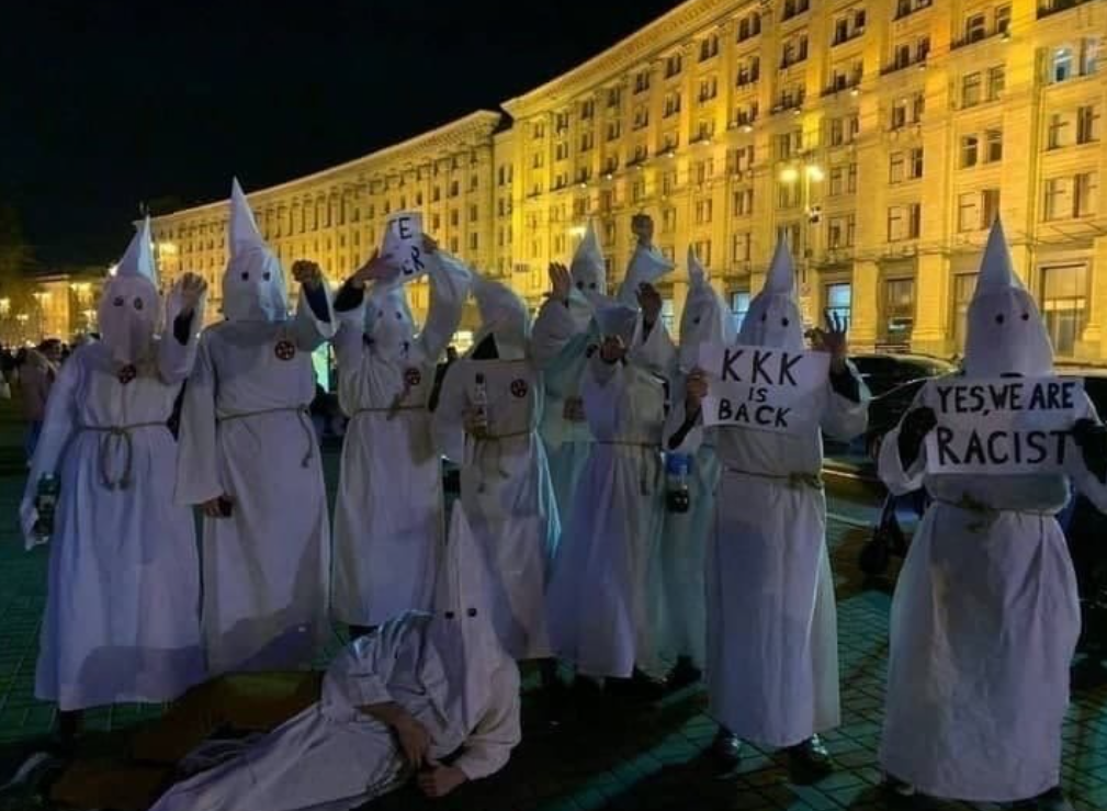 Ομάδα νεαρών Ουκρανών εθνικιστών με αφορμή το Halloween οργάνωσε ρατσιστικό συλλαλητήριο, χαιρετώντας ναζιστικά φορώντας κοστούμια της Κου Κλουξ Κλαν και κρατώντας πλακάτ που έγραφαν «Ναι, είμαστε ρατσιστές», «Η KKK επέστρεψε » και «Λευκή Δύναμη».