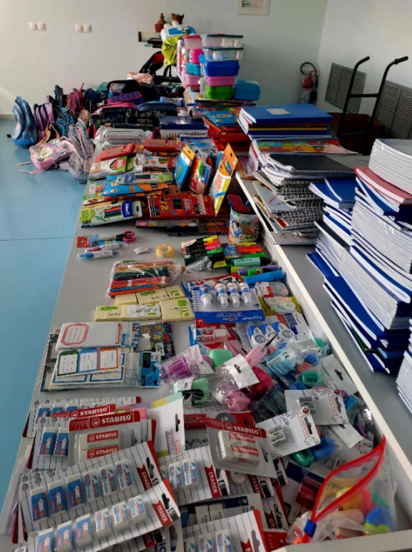 Τα είδη που κατάφεραν να συγκεντρώσουν είναι όλα τα απαραίτητα εργαλεία για τη διεξαγωγή της σχολικής χρονιάς, όπως τσάντες, μολύβια, τετράδια, στυλό, μαρκαδόρους, χάρακες, μπλοκ ζωγραφικής, τα περισσότερα καινούρια και ελάχιστα μεταχειρισμένα, αλλά σε άριστη κατάσταση.