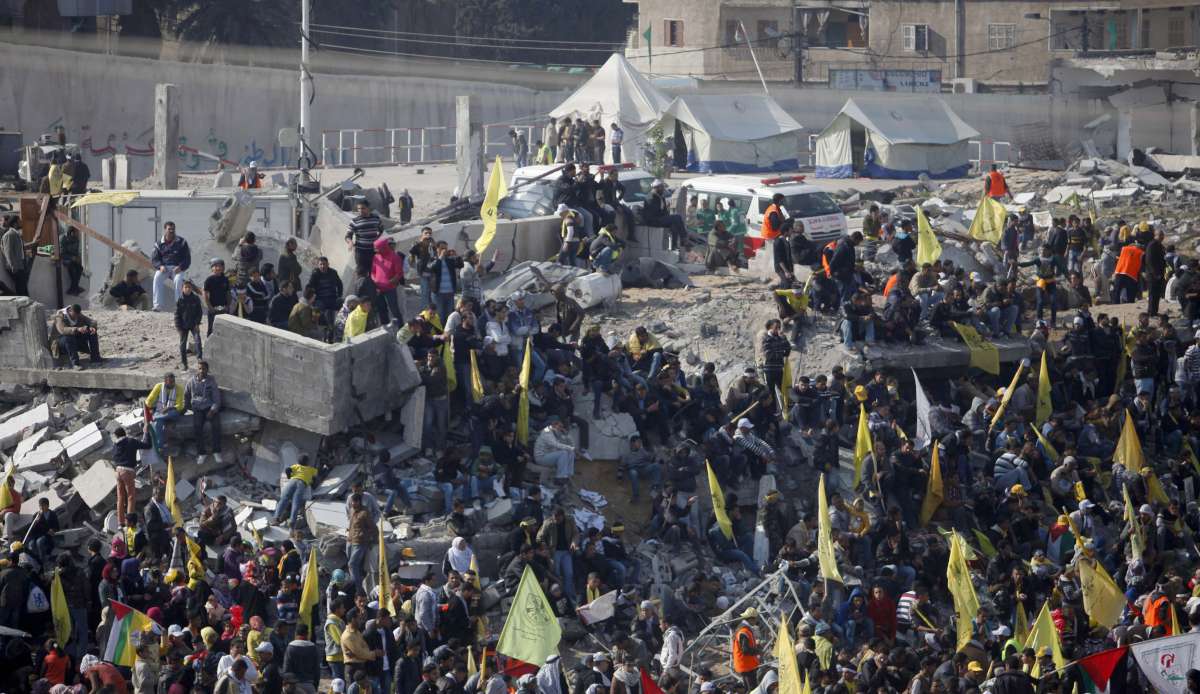Σε πανηγυρικό κλίμα, κατέκλυσαν δρόμους και πλατείες κρατώντας σημαίες της Παλαιστίνης.