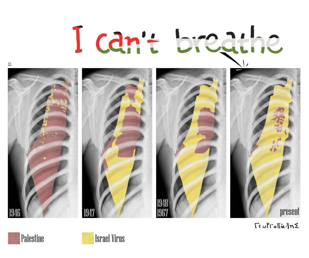 Υπενθυμίζεται ότι το Υπουργείο Εξωτερικών της Ελλάδας δήλωσε τη στήριξη του στο Ισραήλ, ενώ τόσα χρόνια που η Παλαιστίνη πλήττεται βάρβαρα από το καθεστώς στο Ισραήλ δεν έχει ψελλίσει λέξη. Χαρακτηριστικό για την χρόνια κατάσταση στην Παλαιστίνη είναι σκίτσο του Δημήτρη Γεωργοπάλη.