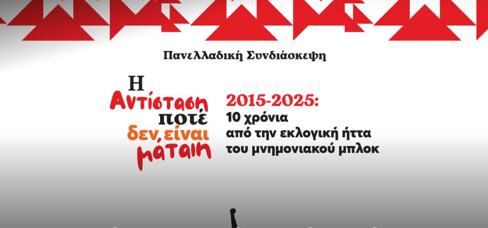 Το ΜέΡΑ25 ξεκινά την Πανελλαδική του Συνδιάσκεψη την Παρασκευή 24 Ιανουαρίου, στις 19:30, στο Δημαρχείο Περιστερίου με την κεντρική ανοιχτή εκδήλωση «Η Αντίσταση ποτέ δεν είναι μάταιη! 2015 – 2025: 10 χρόνια από την εκλογική ήττα του μνημονιακού μπλοκ».