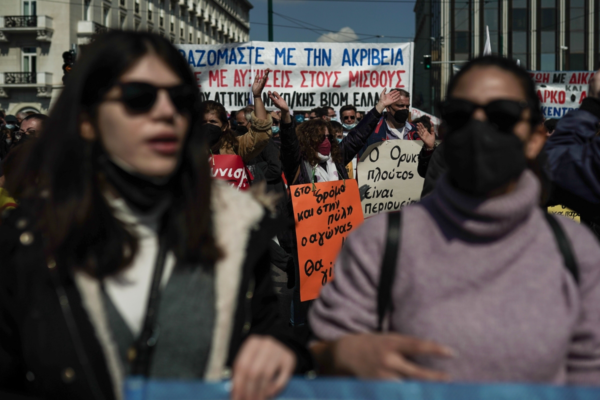 Οι εργαζόμενοι διαδηλωτές διαμαρτύρονται για την τεράστια ακρίβεια, τα σοβαρά πλήγματα στο εισόδημα, την ανυπαρξία ΣΣΕ, τους πολύ υψηλούς φόρους και την επίθεση στους αυτοαπασχολούμενους. Παράλληλα, βρίσκουν την ευκαιρία να εκφράσουν την αντίθεσή τους στον πόλεμο που ξέσπασε στην Ουκρανία και φωνάζουν αντιπολεμικά συνθήματα απαιτώντας να μην υπάρξει εμπλοκή της Ελλάδας.