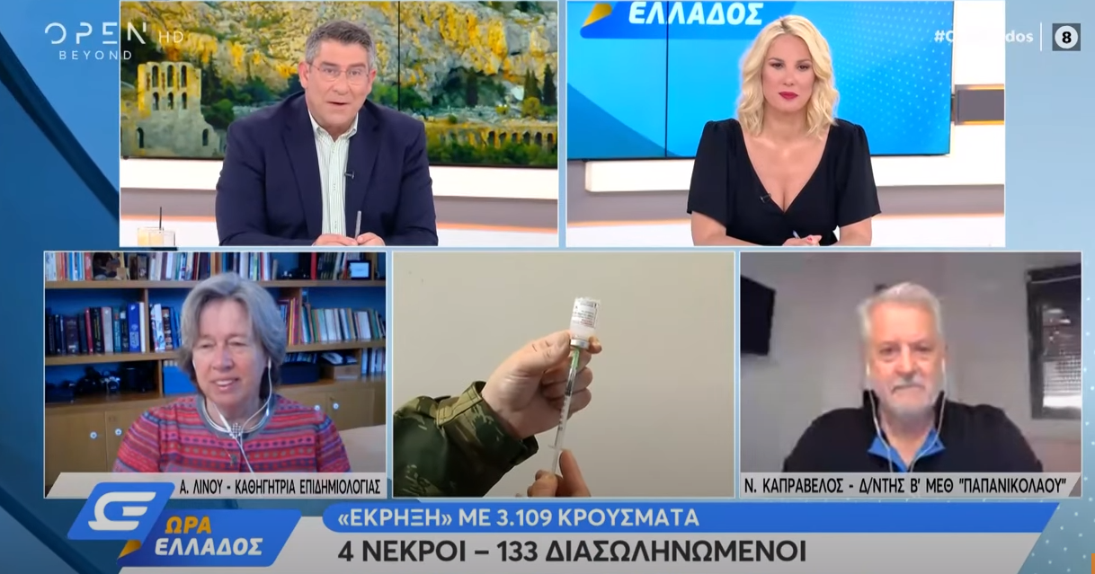 Ο αριθμός των ανεμβολίαστων στις ηλικίες άνω των 50 ετών είναι τόσο μεγάλος, ώστε εάν δεν ελεγχθεί άμεσα η νέα εξάπλωση της πανδημίας, θα είναι αδύνατο το σύστημα Υγείας να αντιμετωπίσει τον όγκο των σοβαρών περιστατικών που θα προκύψουν, εκτίμησαν η καθηγήτρια Επιδημιολογίας Αθηνά Λινού και ο διευθυντής ΜΕΘ του νοσοκομείου Παπανικολάου Νίκος Καπραβέλος, μιλώντας στην πρωινή ενημερωτική εκπομπή του Open.