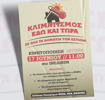 «Δεν ανεχόμαστε τον χειμώνα να ξεπαγιάζουμε και το καλοκαίρι να ψηνόμαστε. Κυβέρνηση – Υπουργείο Παιδείας – Ίδρυμα Νεολαίας και Δια Βίου Μάθησης έχουν εγκληματικές ευθύνες!!» υπογραμμίζουν στο κάλεσμα τους οι εστιακοί/ες φοιτητές και φοιτήτριες.