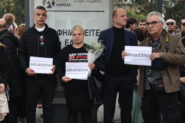 Σύμφωνα με το larissanet μπροστά βρέθηκε η Άλμα Λάτα – μητέρα της Κλαούντια – σιωπηλή, να κρατά λίγα λουλούδια και ένα χαρτί με το μήνυμα «ΔΙΚΑΙΟΣΥΝΗ» για τα θύματα του εγκλήματος.