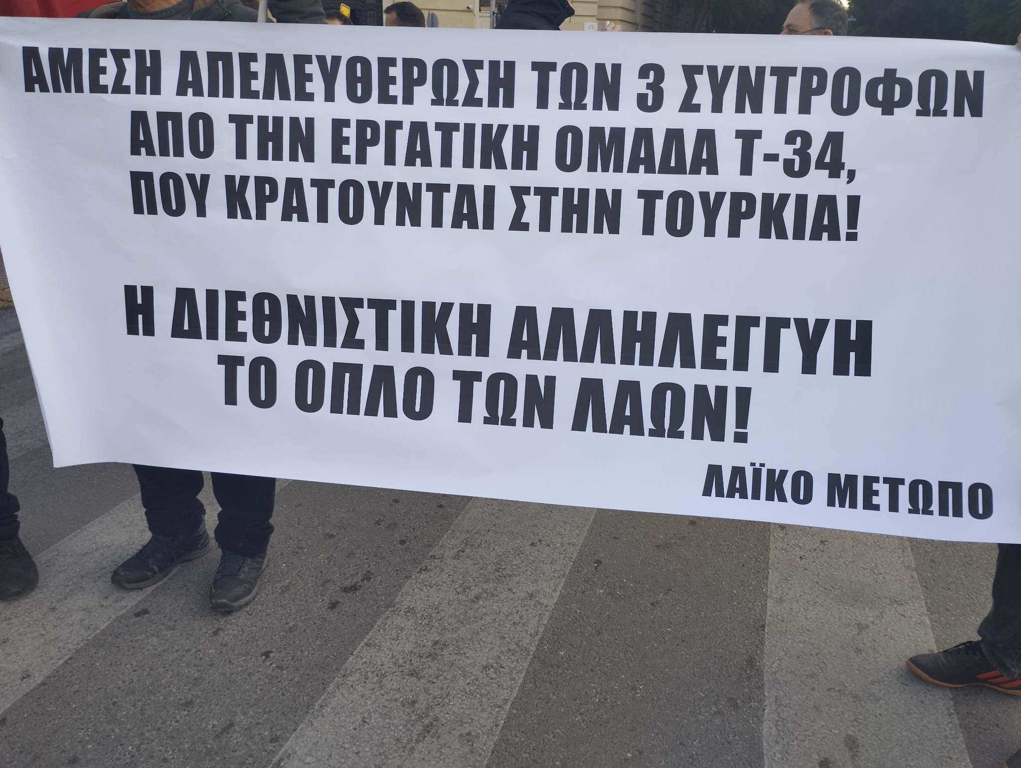 Οι παρευρισκόμενοι στην κινητοποίηση δηλώνουν ότι θα κλιμακώσουν τις αντιδράσεις τους έως ότου απελευθερωθούν οι σύντροφοί τους. Ακόμη, διευκρινίζουν ότι οι αντιδράσεις δεν θα καμφθούν με την απέλαση των τριών, ενώ απαιτούν να αφεθούν ελεύθεροι και να συνεχίσουν το διεθνιστικό τους έργο για τους έχοντες ανάγκη στην Τουρκία.