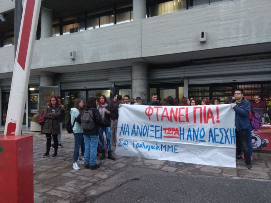 «Ως εδώ! Απαιτούμε το μόνιμο και σταθερό άνοιγμα της Άνω Λέσχης, να αποσυμφορηθούν τώρα οι ουρές με τη λειτουργία όλων των διανομών! Ποιοτική και αναβαθμισμένη σίτιση για όλους τους φοιτητές! Σε αυτή την κατεύθυνση, μετά από μαζική απεύθυνση στα τμήματα και τις ουρές της φοιτητικής λέσχης συγκεντρώθηκαν από εκπροσώπους των φοιτητικών συλλόγων πάνω από 1000 υπογραφές για την ικανοποίηση των παραπάνω αιτημάτων».