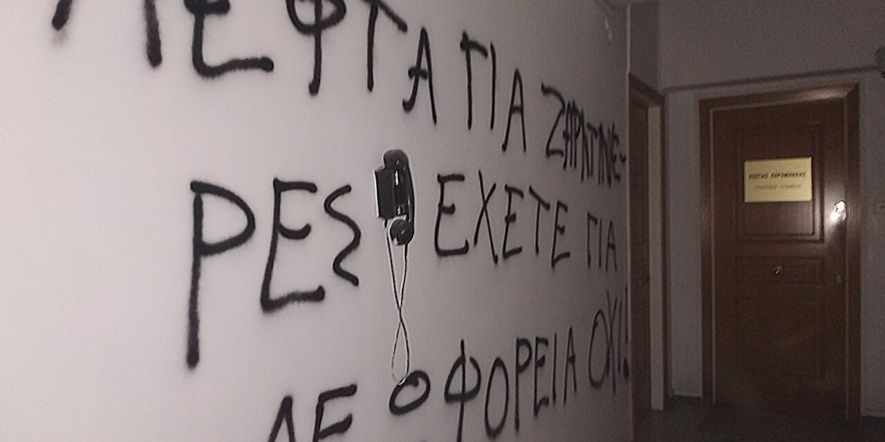 Στο πολιτικό γραφείο του υπουργού Υποδομών και Μεταφορών Κ. Καραμανλή βρέθηκε η συλλογικότητα Ρουβίκωνας πραγματοποιώντας παρέμβαση απέναντι στην υποβάθμιση και τα σχέδια «ιδιωτικοποίησης» των δημόσιων συγκοινωνιών, όπως αναφέρει.