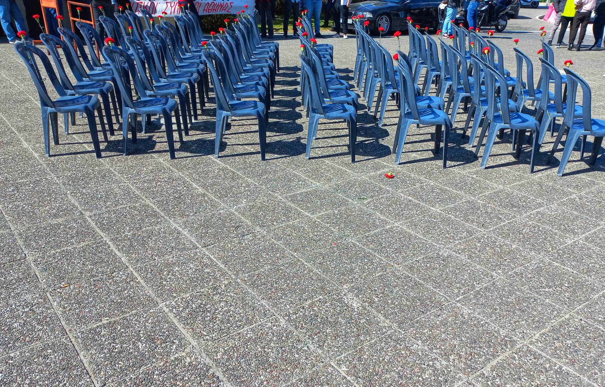 Παρέμβαση στο υπ. Μεταφορών από φοιτητές – 57 κενές καρέκλες κι ένα γαρύφαλλο για τα θύματα του εγκλήματος στα Τέμπη