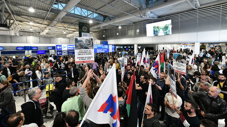 🚨 Flash protest of the workers of Athens at the Athens International Airport#FreePalestine#FreePalestine#FreePalestine