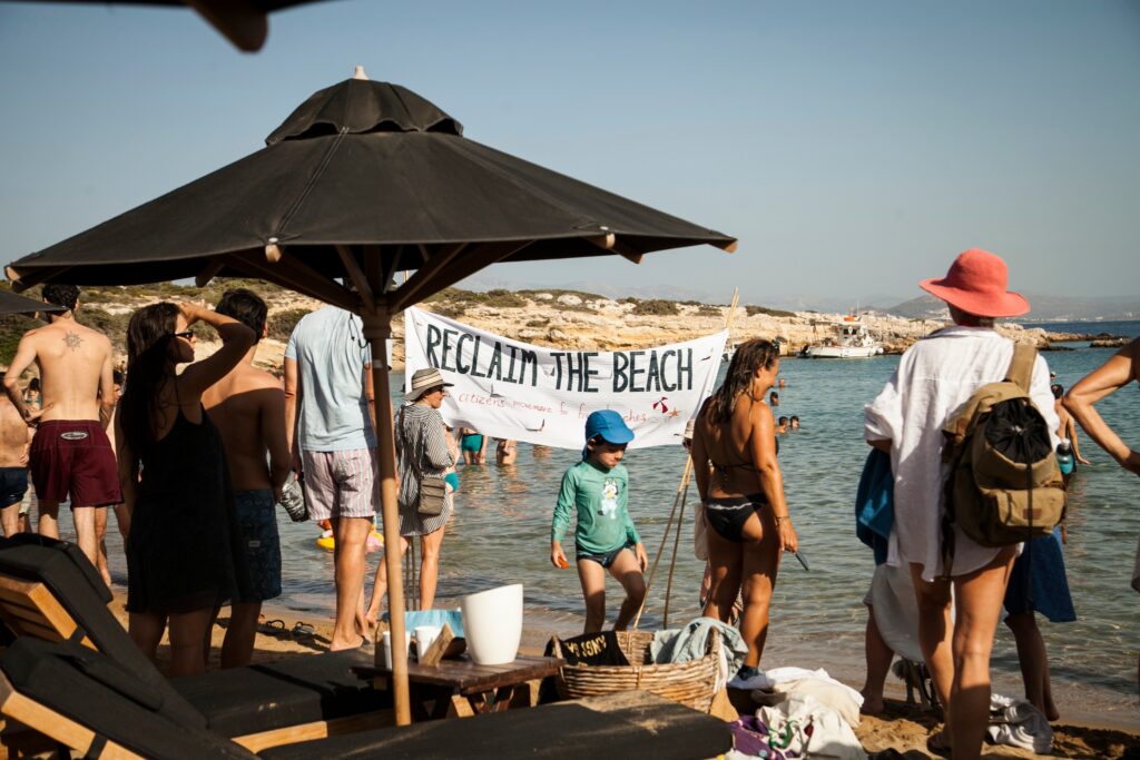 Υπενθυμίζεται ότι στην Πάρο, εκατοντάδες κατοικοί οργανώνονται εδώ και αρκετές εβδομάδες, διεκδικώντας το δικαίωμά τους σε ελεύθερη πρόσβαση στις παραλίες του νησιού. Η «Κίνηση Πολιτών Πάρου για Ελεύθερες Παραλίες ξεκίνησε αυθόρμητα, πριν περίπου δύο μήνες, προσπαθεί να κινητοποιήσει τις αρμόδιες αρχές ώστε να ληφθούν τα απαραίτητα μέτρα, καταγράφει αναλυτικά, με συμβάσεις και αεροφωτογραφίες τις πολλές αυθαιρεσίες σε ένα ειδικό, ψηφιακό Παρατηρητήριο, ενώ την Κυριακή, 23 Ιουλίου, οργάνωσε το πρώτο μπάνιο – ειρηνική διαμαρτυρία σε παραλία του νησιού.