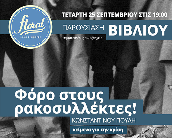Την Τετάρτη 25 Σεπτεμβρίου στις επτά το απόγευμα το ThePressProject παρουσιάζει στο Floral την πρώτη του έκδοση: το βιβλίο του Κωνταντίνου Πουλή, «Φόρος στους Ρακοσυλλέκτες».