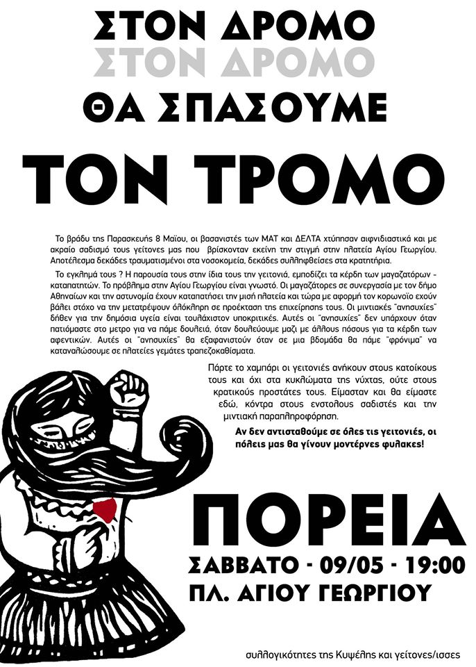 Μετά τα χθεσινοβραδiνά επεισόδια, συλλογικότητες και κάτοικοι της Κυψέλης προχώρησαν σε κάλεσμα για πορεία στην πλατεία του Αγίου Γεωργίου, για το απόγευμα του Σαββάτου, στις 19.00.