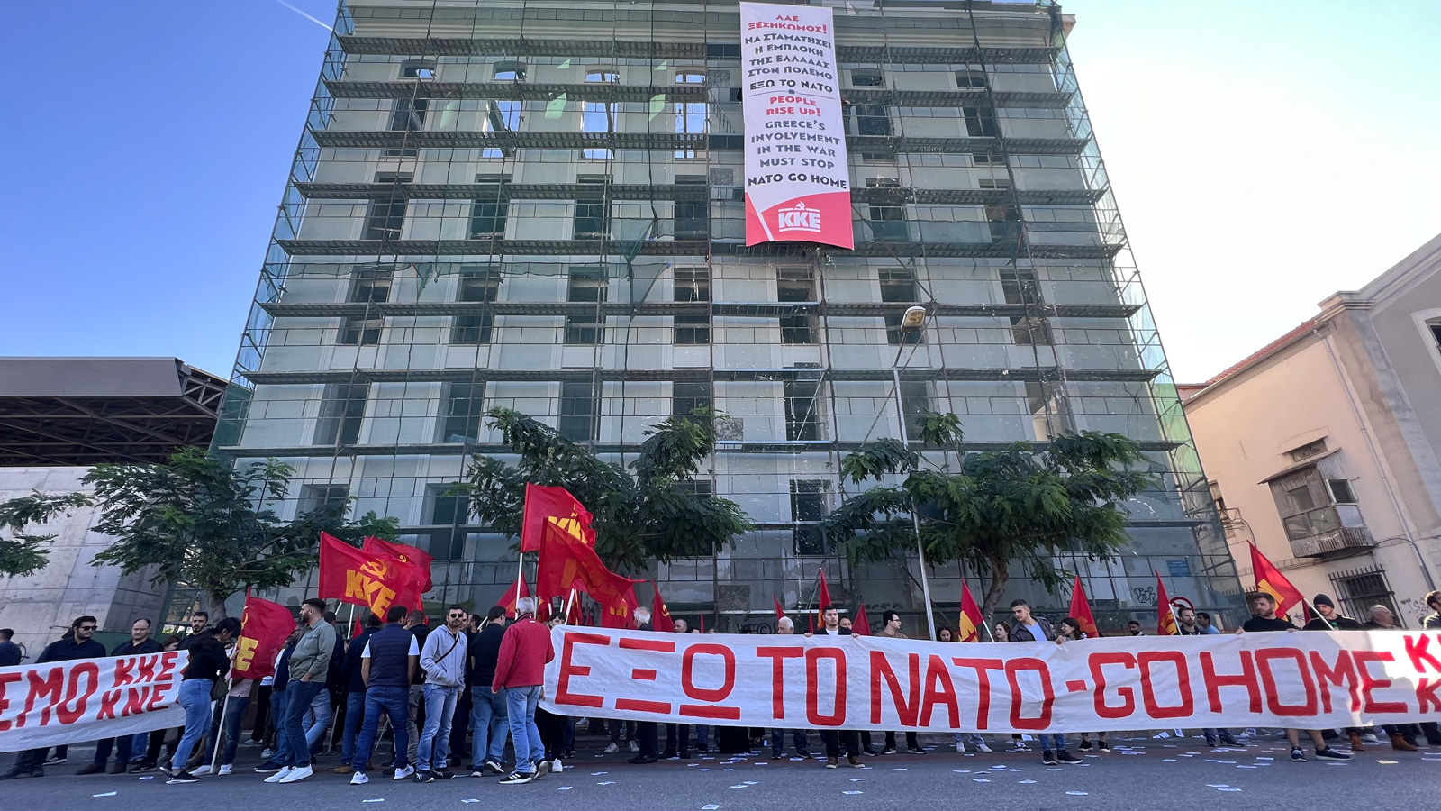 Όπως μεταδίδει το 902.gr, ΚΚΕ και ΚΝΕ κάλεσαν τον λαό της Πάτρας σε ξεσηκωμό και να σταματήσει η εμπλοκή της Ελλάδας στο πόλεμο. «Λαέ ξεσηκωμός! Να σταματήσει η εμπλοκή της Ελλάδας στον πόλεμο. Έξω το ΝΑΤΟ», ανέγραφε το σύνθημα του γιγαντοπανό που ήταν γραμμένο στην ελληνική και αγγλική γλώσσα.
