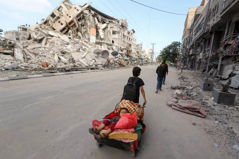 Στην αντίπερα όχθη η γενοκτονία και η σφαγή των Παλαιστινίων έχει ξεσηκώσει σε όλο τον κόσμο ένα πρωτοφανές κίνημα αλληλεγγύης για την κατάπαυση της επίθεσης.