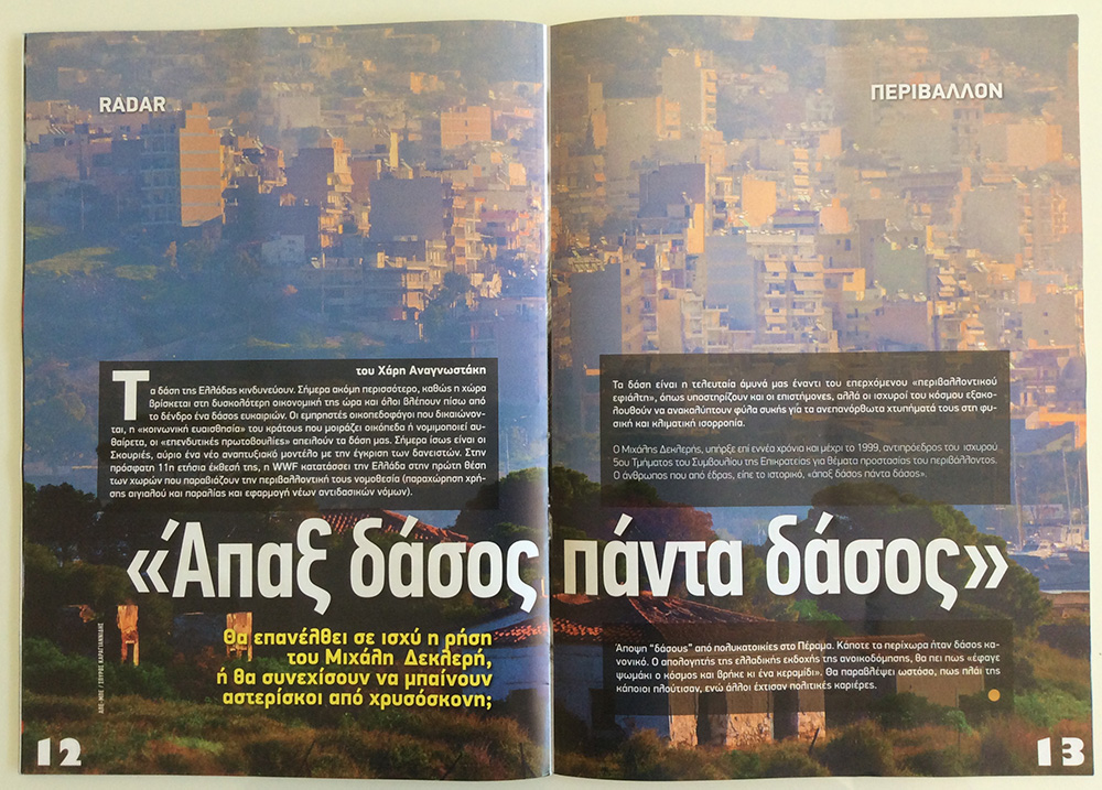 Πέραν της πρωτοφανούς -και κατά τη γνώμη μου σκανδαλώδους- προσβολής των αναγνωστών μέσω της έκδοσης ενός περιοδικού με αποκλειστικό σκοπό την συλλογή χρημάτων (και χωρίς πραγματική ύλη) υπάρχει και ένα ακόμα θέμα. Η πρώτη κυβέρνηση της Αριστεράς θα έπρεπε να είναι και της οικολογίας. Να μη ξεχνάμε ότι και η Πειραιώς μας έχει πρήξει με τις διαφημίσεις για το πόσο νοιάζεται να σωθούν τα δέντρα με την μείωση της χρήσης χαρτιού. Πώς μπορεί λοιπόν να εκδίδεται ένα τέτοιο έντυπο που στην πραγματικότητα, αφού δεν εκπληρώνει τον σκοπό της δημοσίευσης, δεν είναι τίποτα άλλο από πεταμένο χοντρό, ιλουστρασιόν χαρτί.