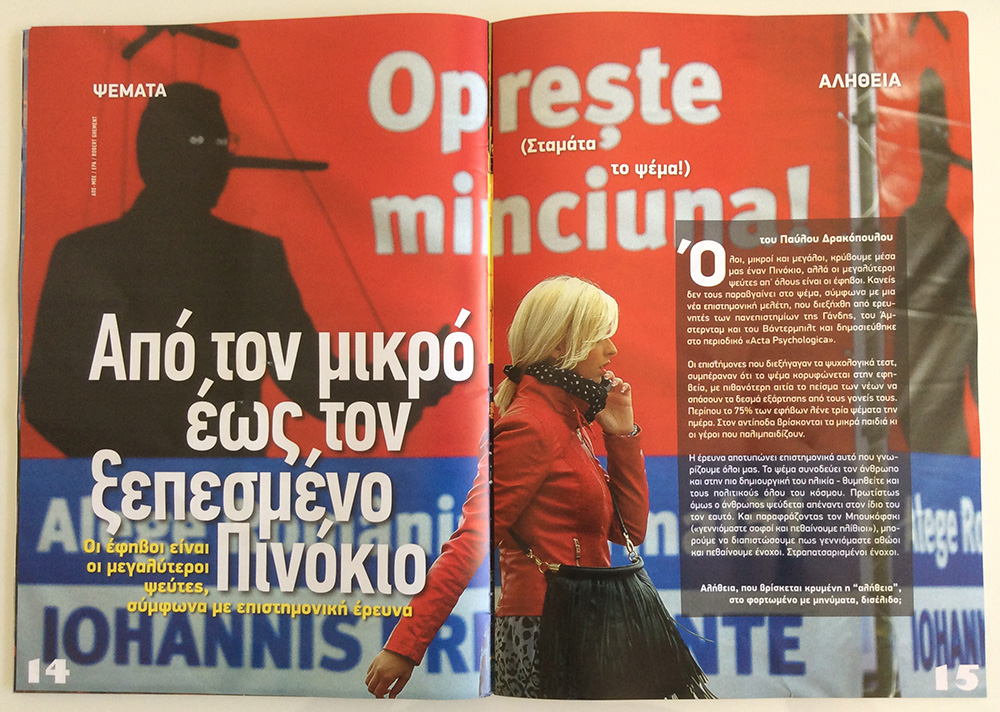 Και το ρεκόρ είναι στο τελευταίο σαλόνι. Ένα ακόμα 2σέλιδο με τίτλο «Αλήθεια». Η αλήθεια όμως φαίνεται ότι έρχεται από κάποιον ολιγόλογο φιλόσοφο…