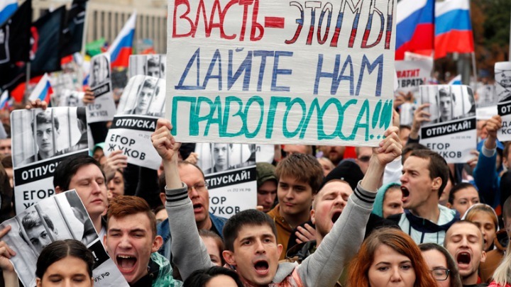 Δεκάδες χιλιάδες Μοσχοβίτες πραγματοποίησαν σήμερα τη μεγαλύτερη πολιτική διαμαρτυρία που έχει γίνει εδώ και χρόνια στη Ρωσία, με αίτημα τη διεξαγωγή ελεύθερων τοπικών εκλογών παρά την κυβερνητική καταστολή.