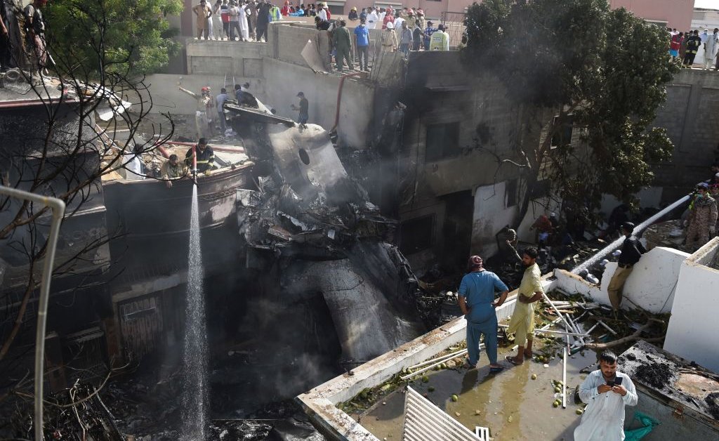 PIA Airbus crashes with 107 onboard, including 8 crew members near Karachi airport #Pakistan pic.twitter.com/AdfT1xzK9I